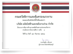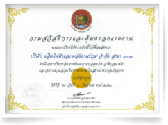 ใบรับรอง มาตรฐานการป้องกันและแก้ไขปัญหายาเสพติดในสถานประกอบกิจการ